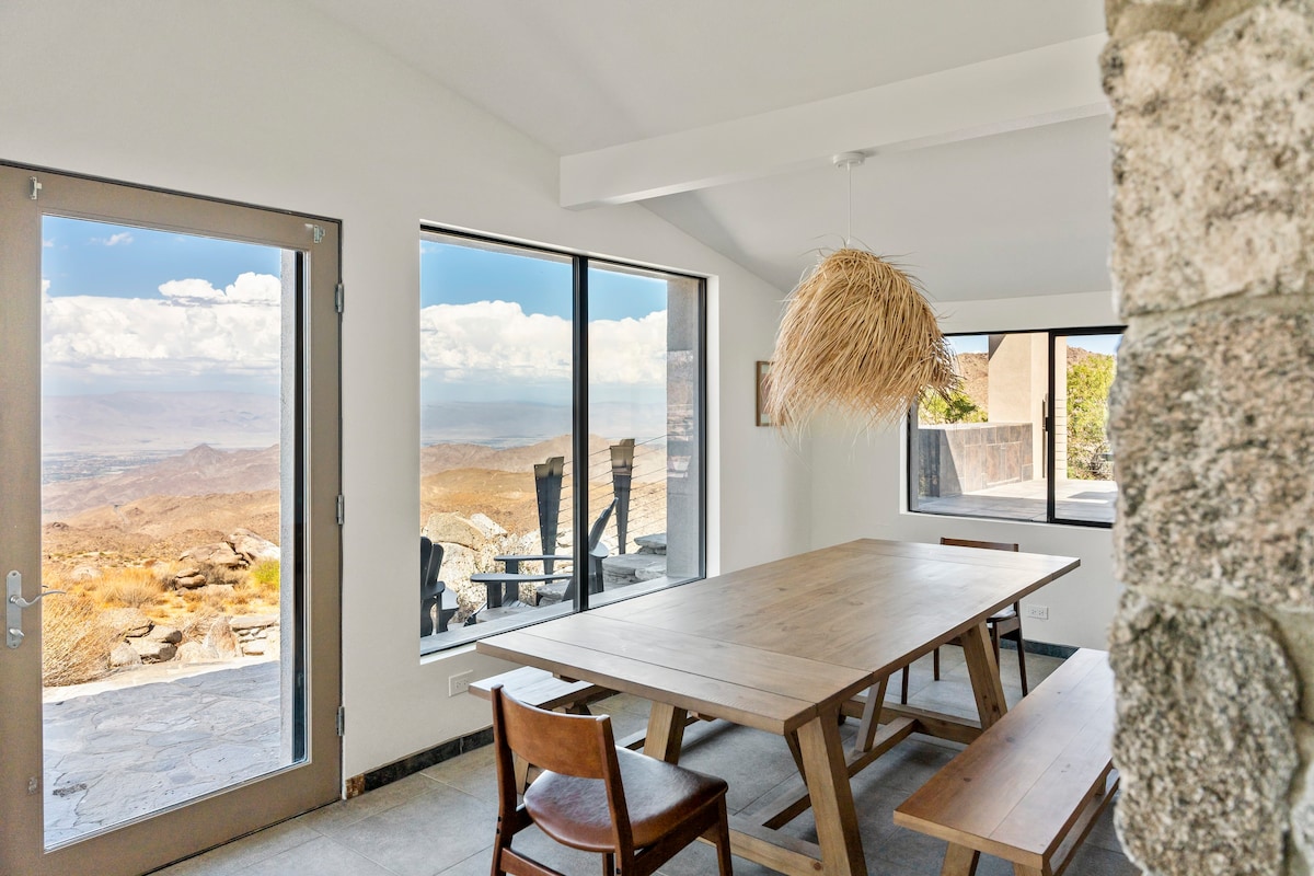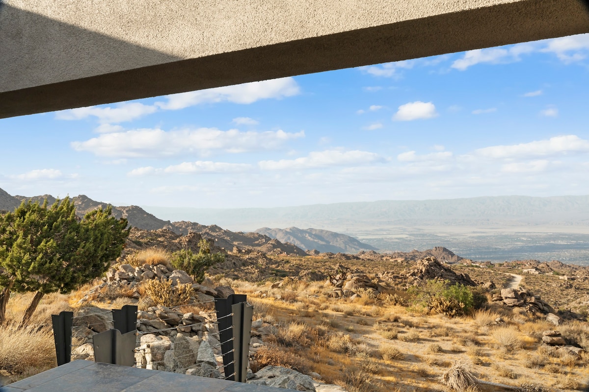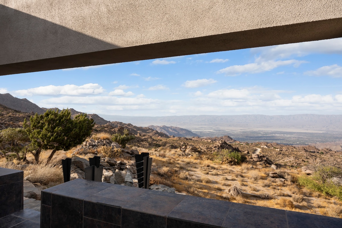 Welcome to BaseCamp74, a one-of-a-kind vacation rental home perched on 77 acres of private land and offering unparalleled views of the Palm Springs area.