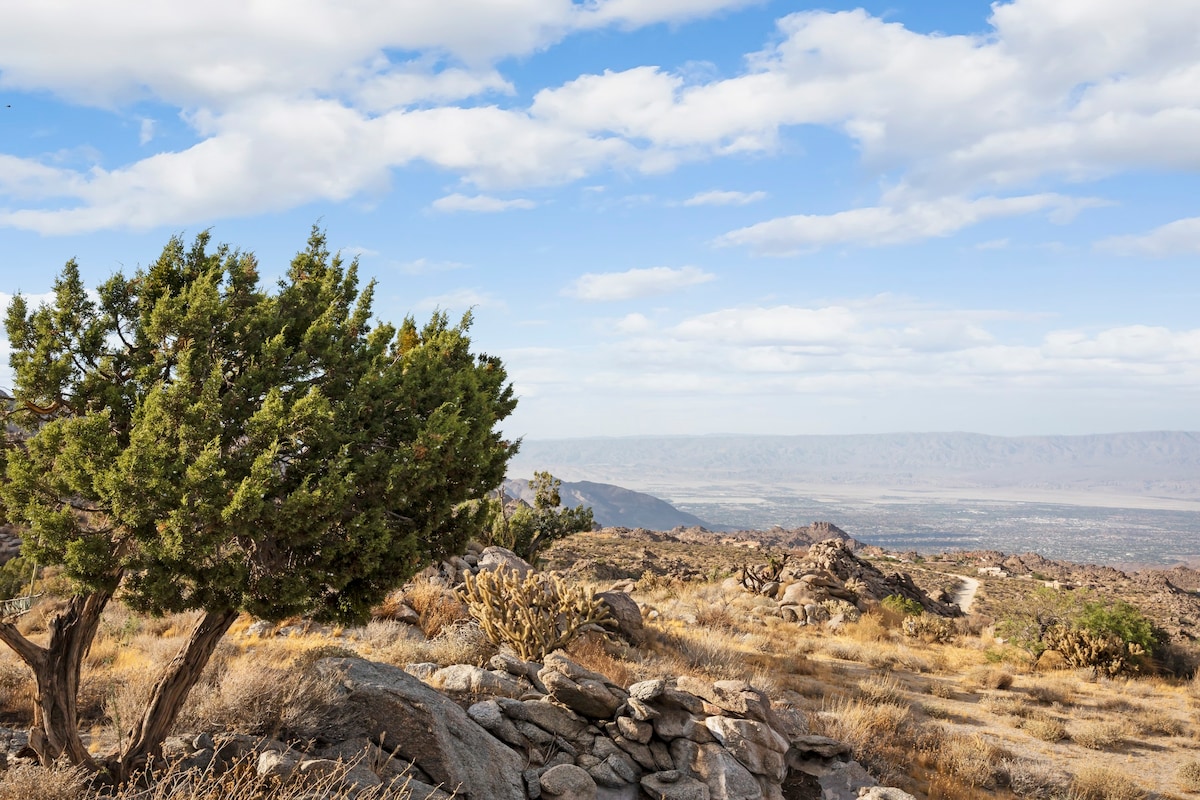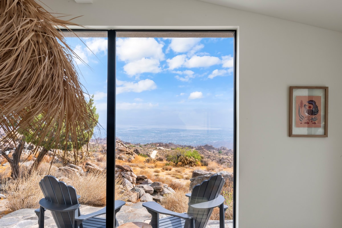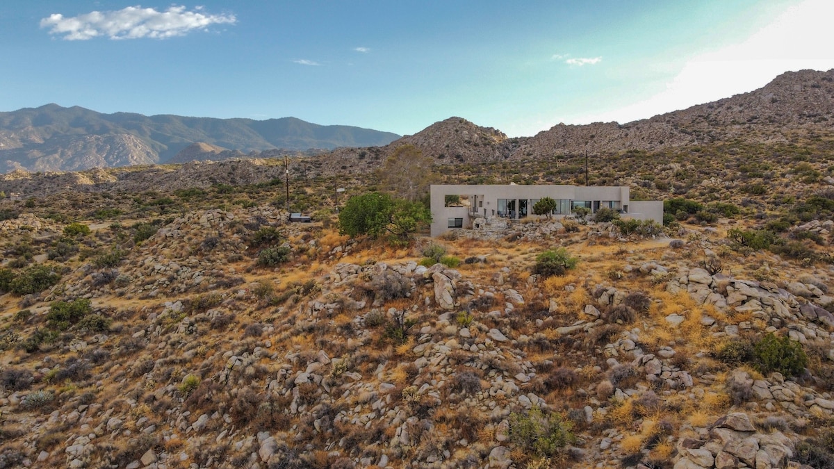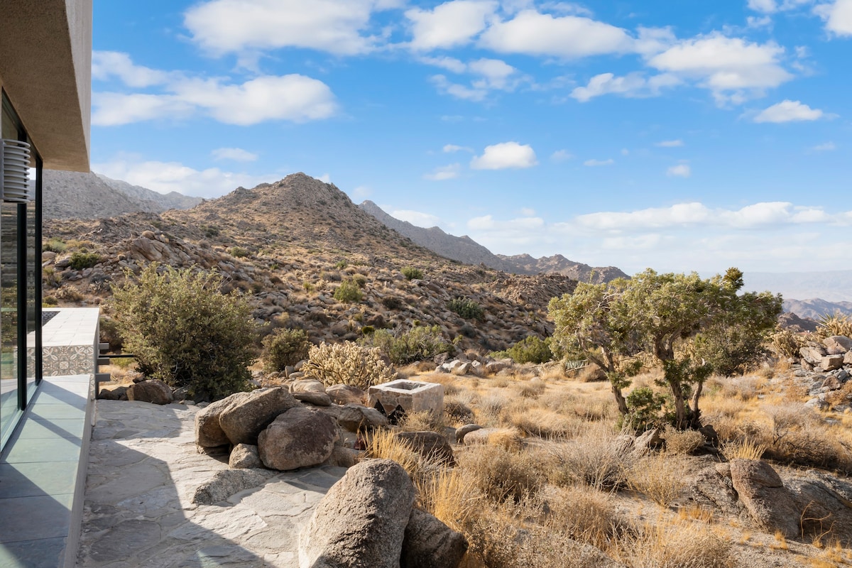 Welcome to BaseCamp74, a one-of-a-kind vacation rental home perched on 77 acres of private land and offering unparalleled views of the Palm Springs area.