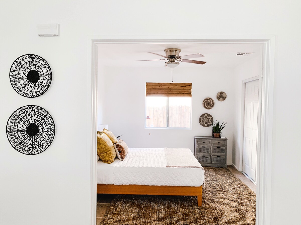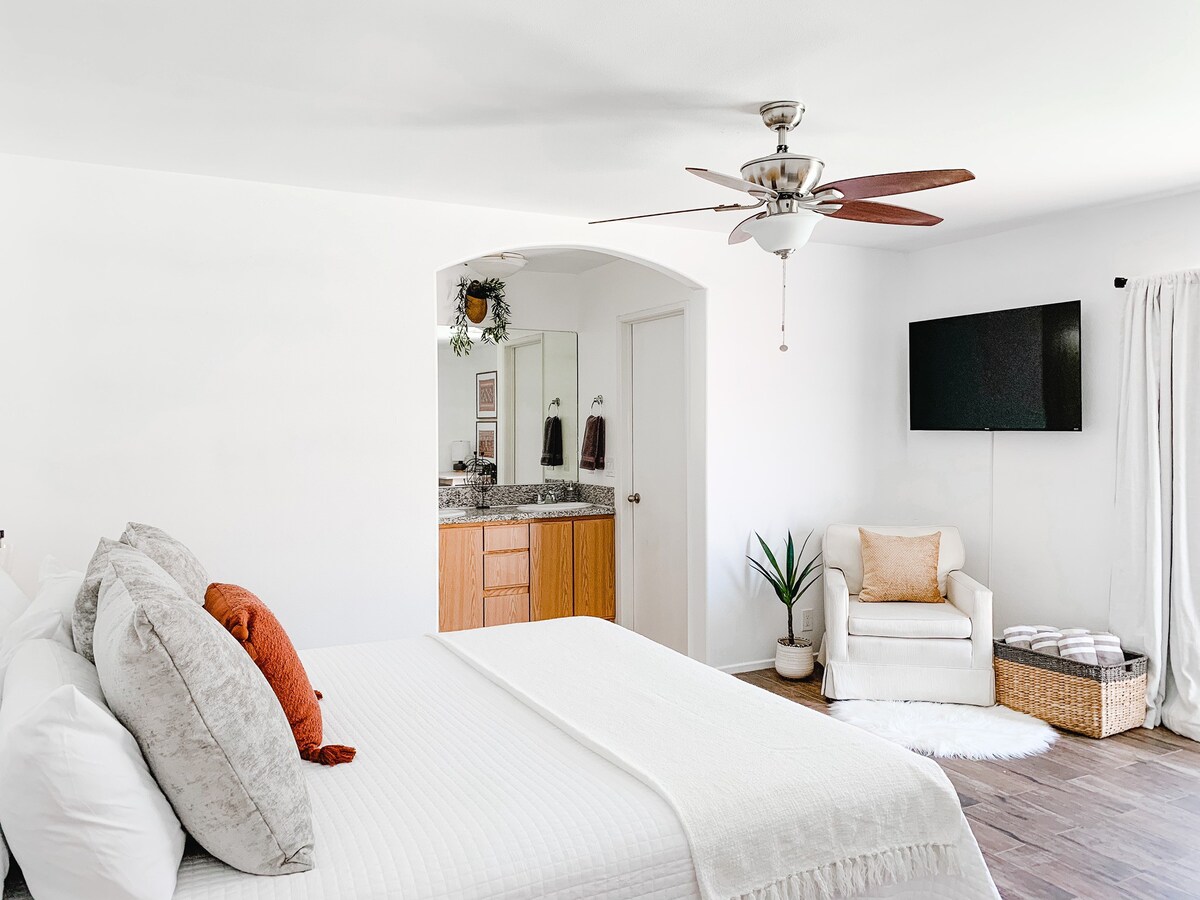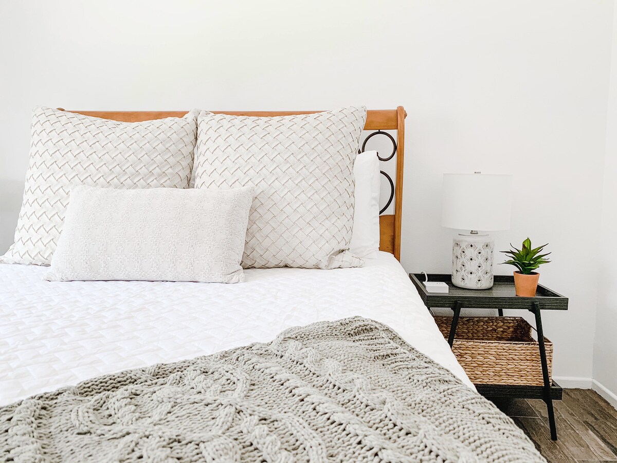 – King sized bed with comfortable mattress and made up with our favorite, soft linens.