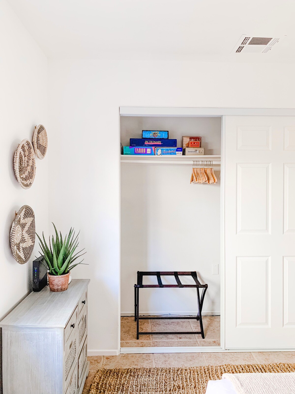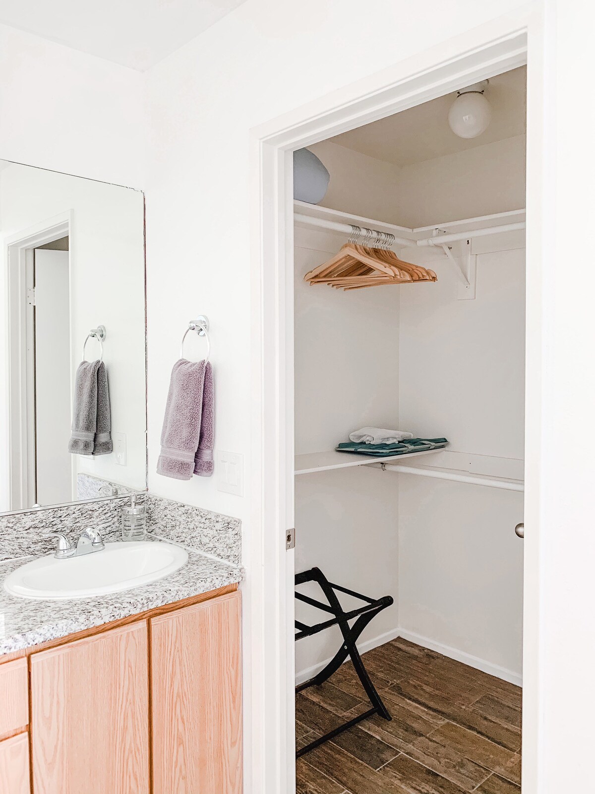 – Large closets with hangers and luggage stands