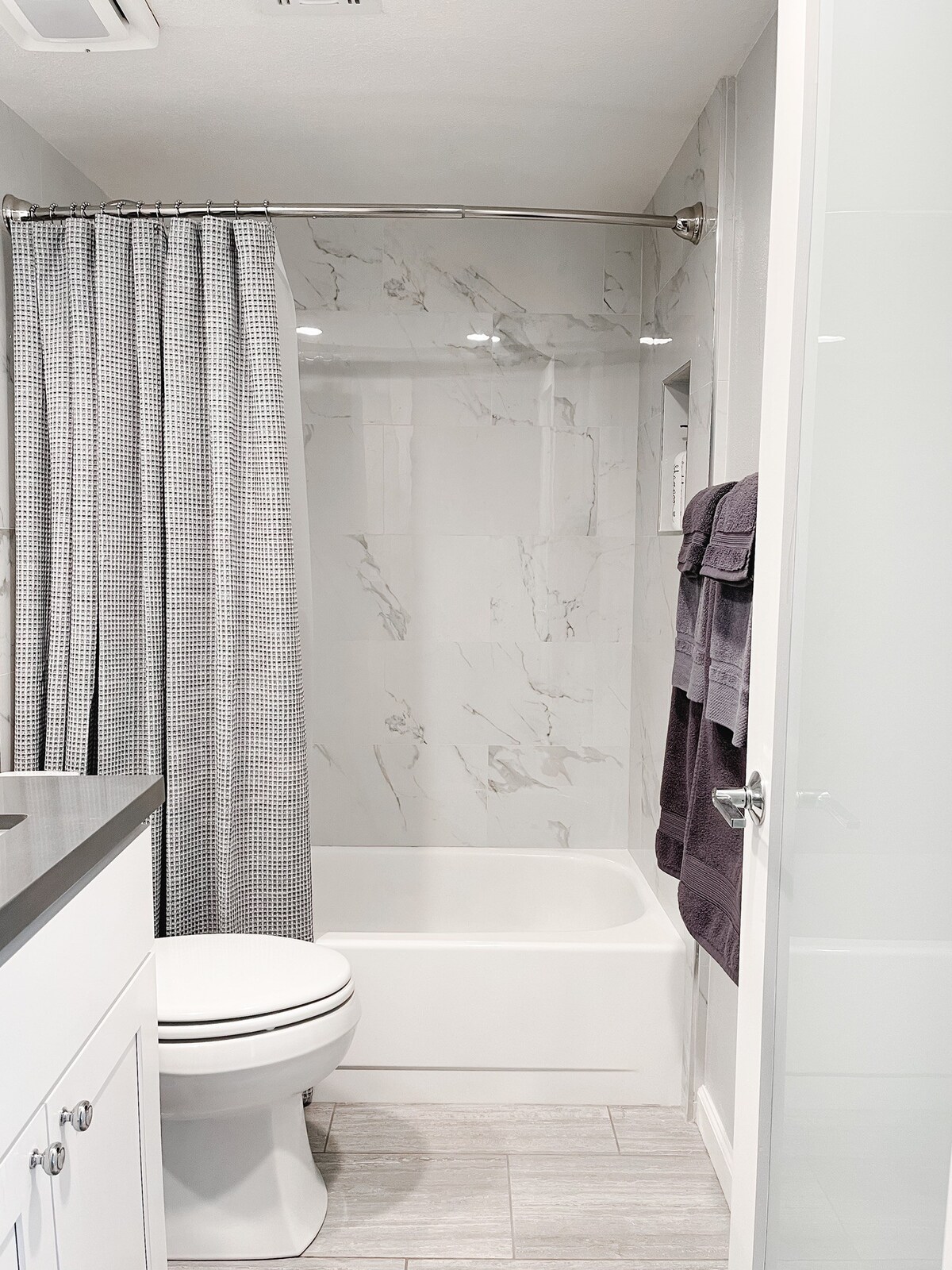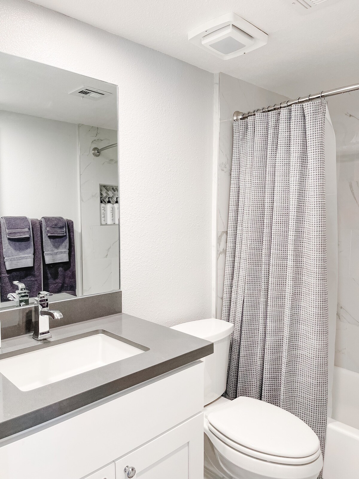 – Full bathroom in the hallway with a shower/tub combo.