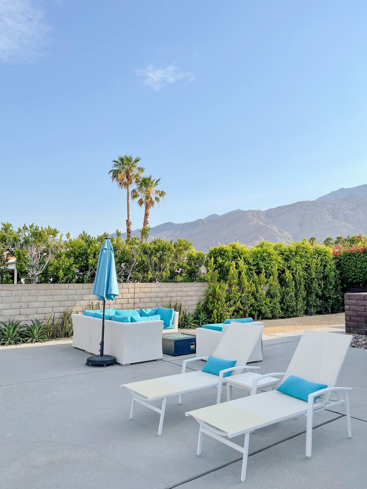 – Mature desert landscaping and mountain views