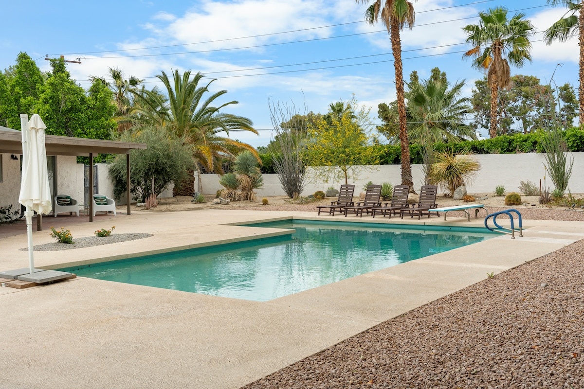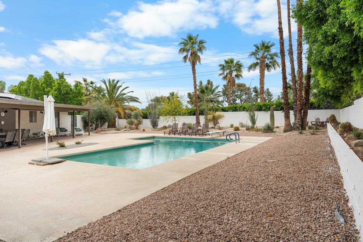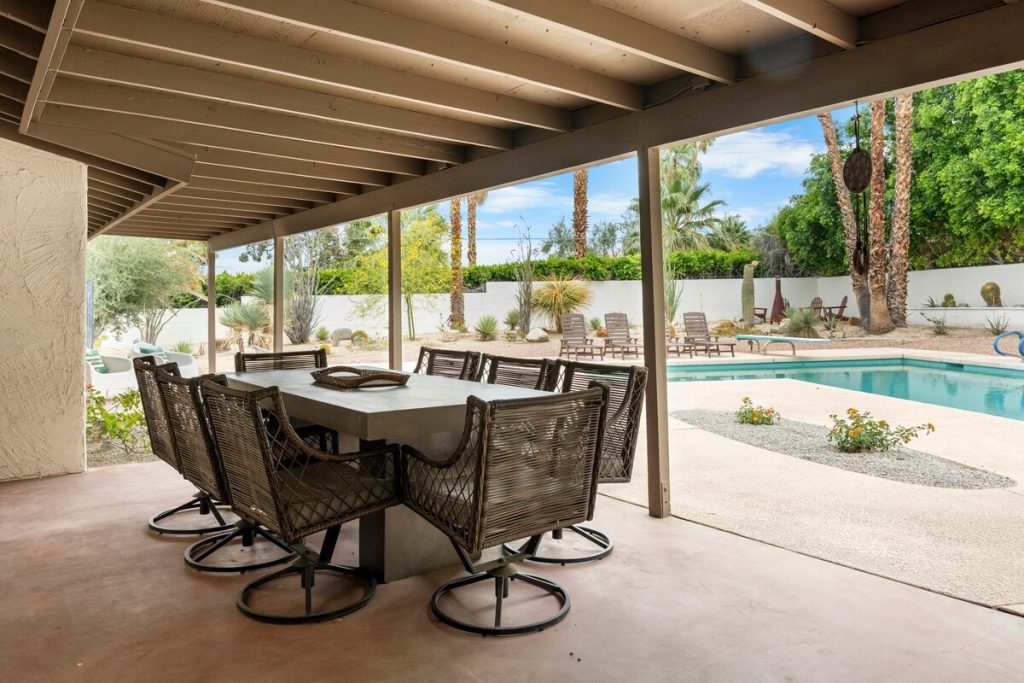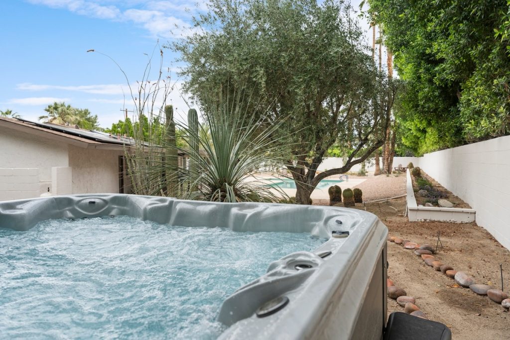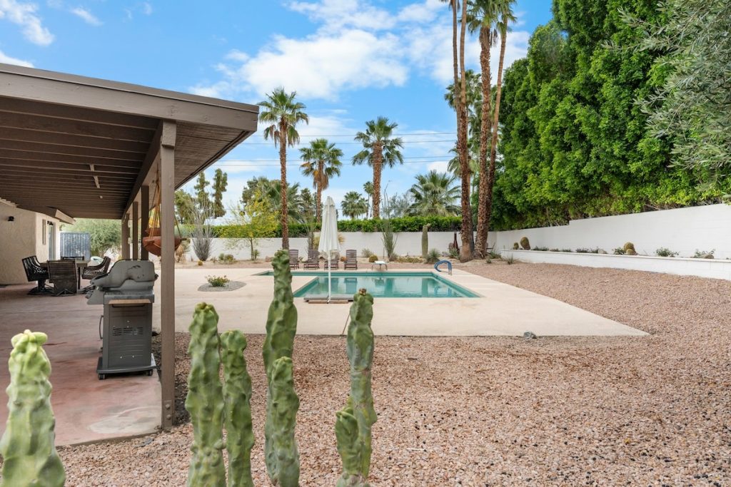 Step outside to find an expansive backyard framed by mature desert landscaping and mountain views. Take a dip in the extra-deep swimming pool, unwind in the private hot tub, or enjoy golden hour gathered around the chiminea. Lounge under the palms or dine under the stars – the outdoor space is as inviting as the interior.