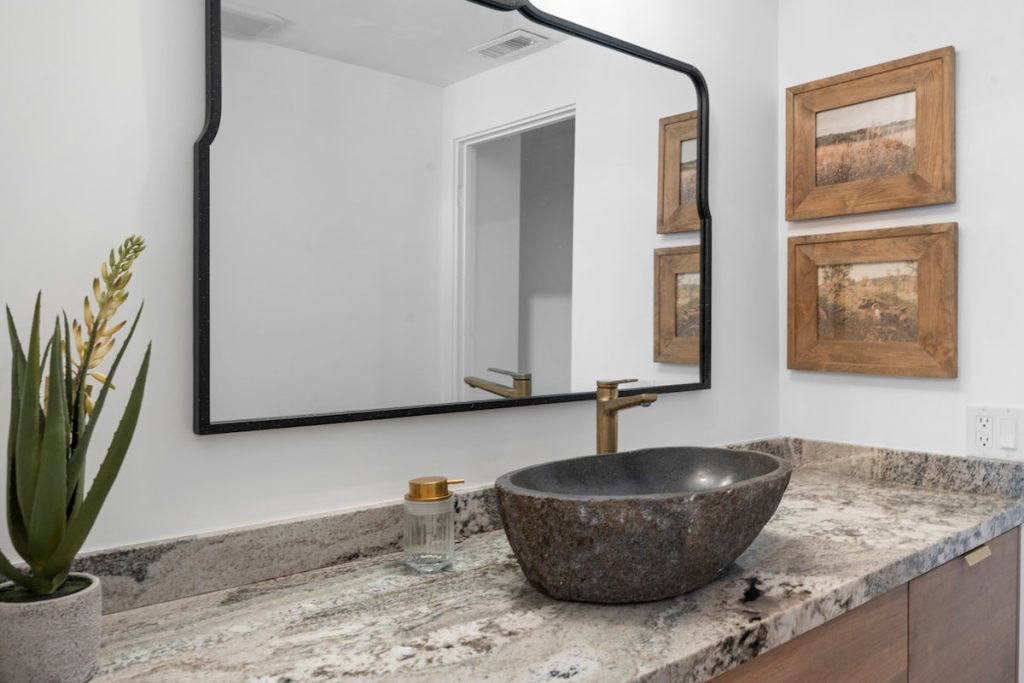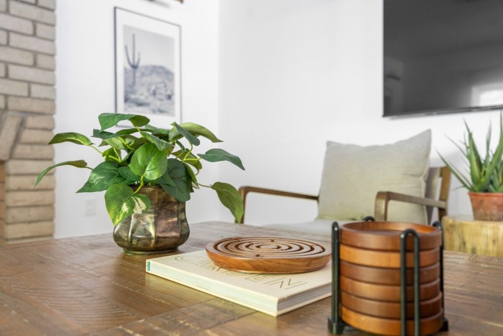 Ocotillo Ranch offers a warm, laid-back vibe with design-forward interiors, a 9’ deep pool, above ground hot tub, chiminea, and mountain views.