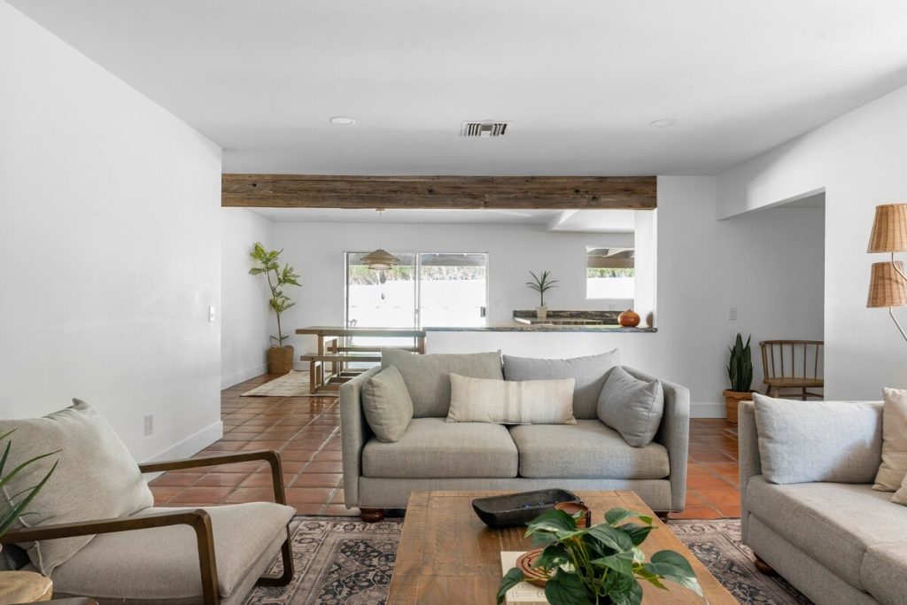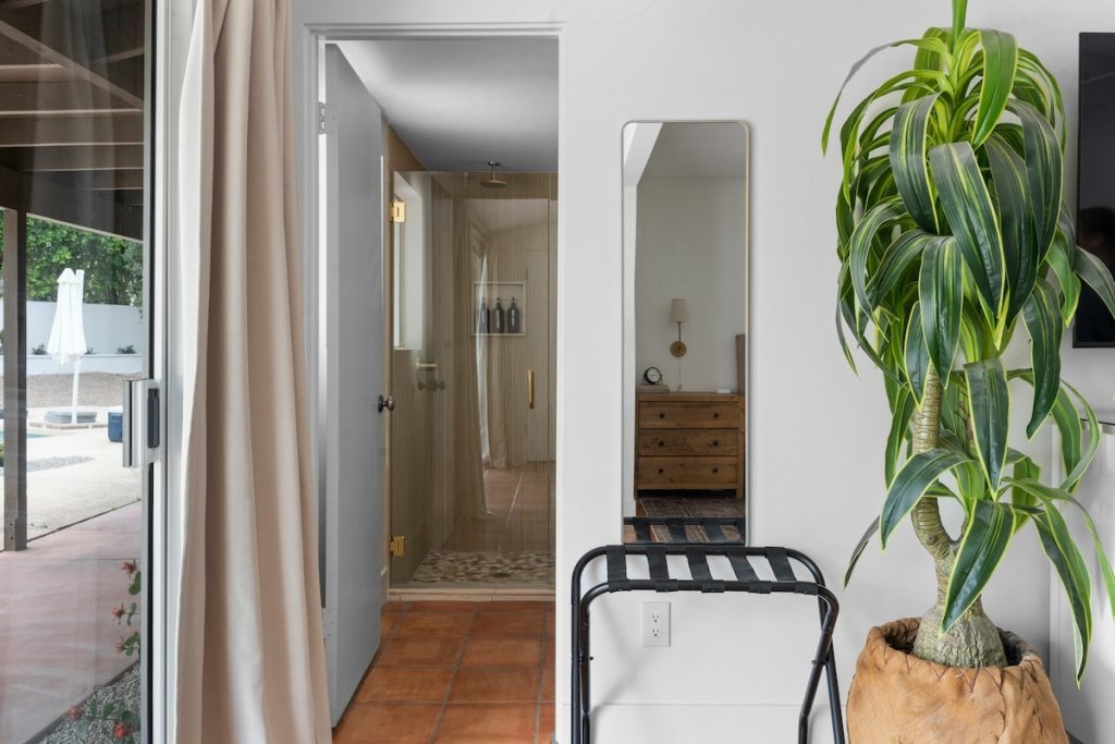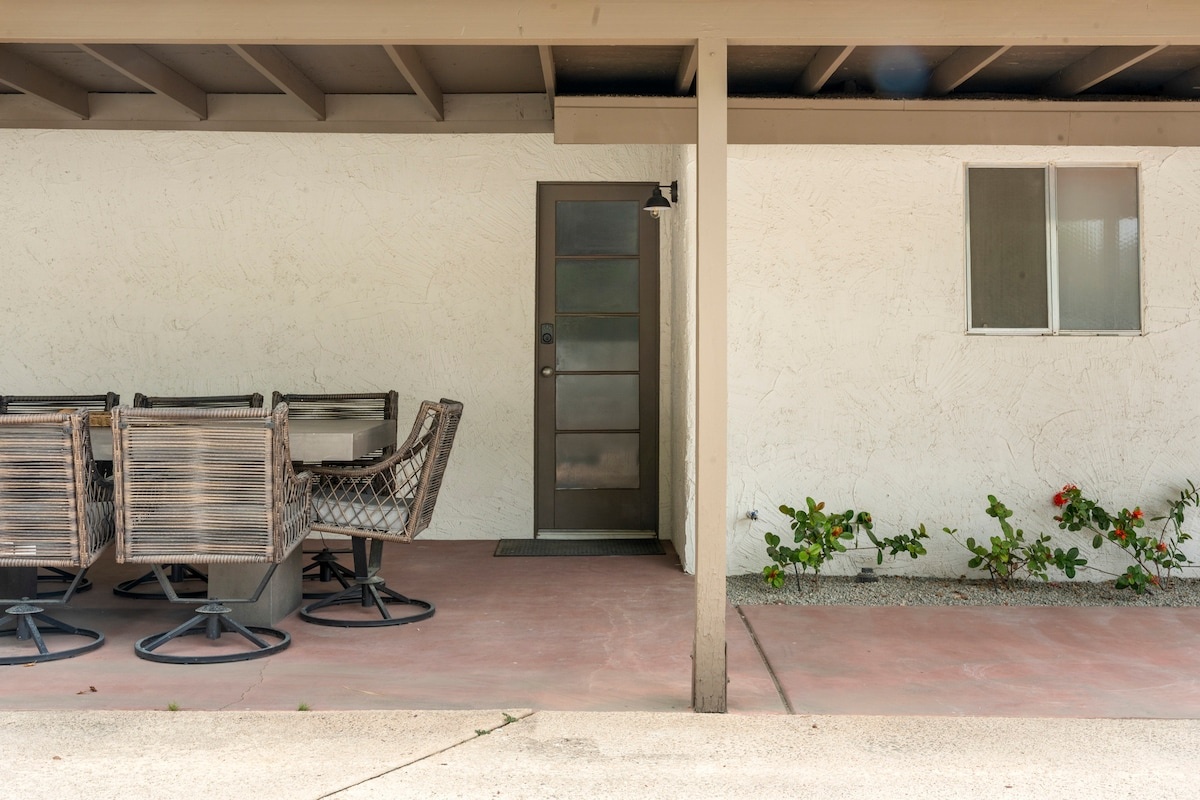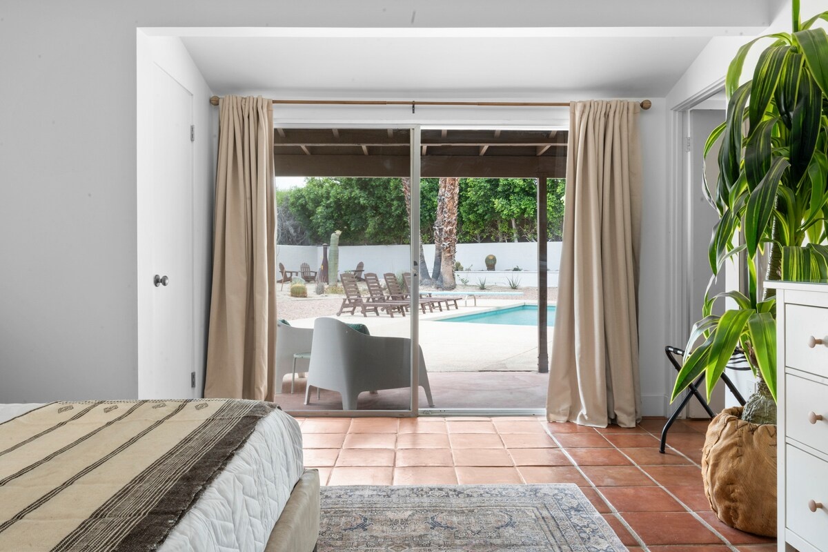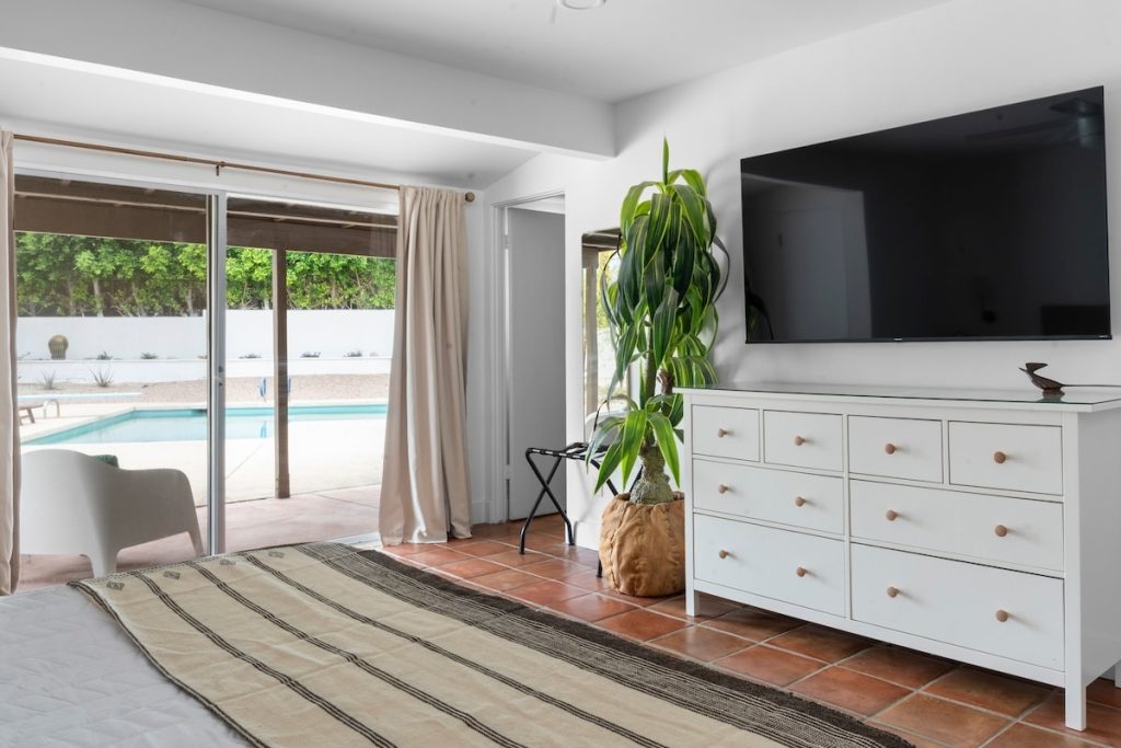 Inside, warm textures and a curated, collected design make the space feel like home. The open-concept living area is ideal for slow mornings or relaxed evenings in, with a fully stocked kitchen, dining for six, and seamless flow to the backyard. The primary bedroom features an ensuite bath and direct patio access.