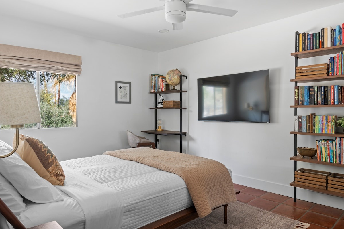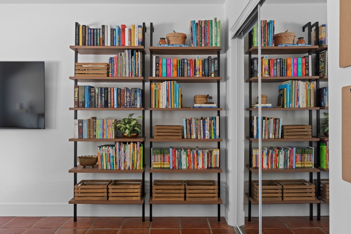 Bedroom 2: Queen bed, writing desk, and home library for all ages