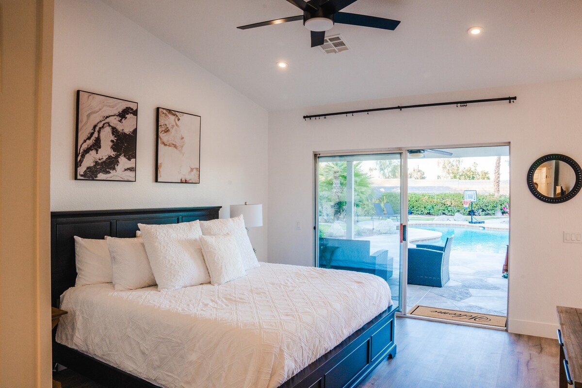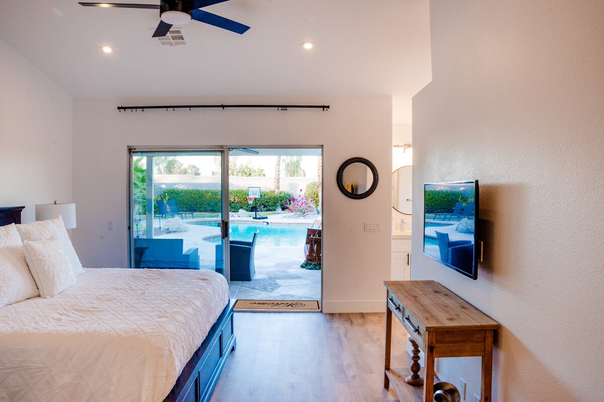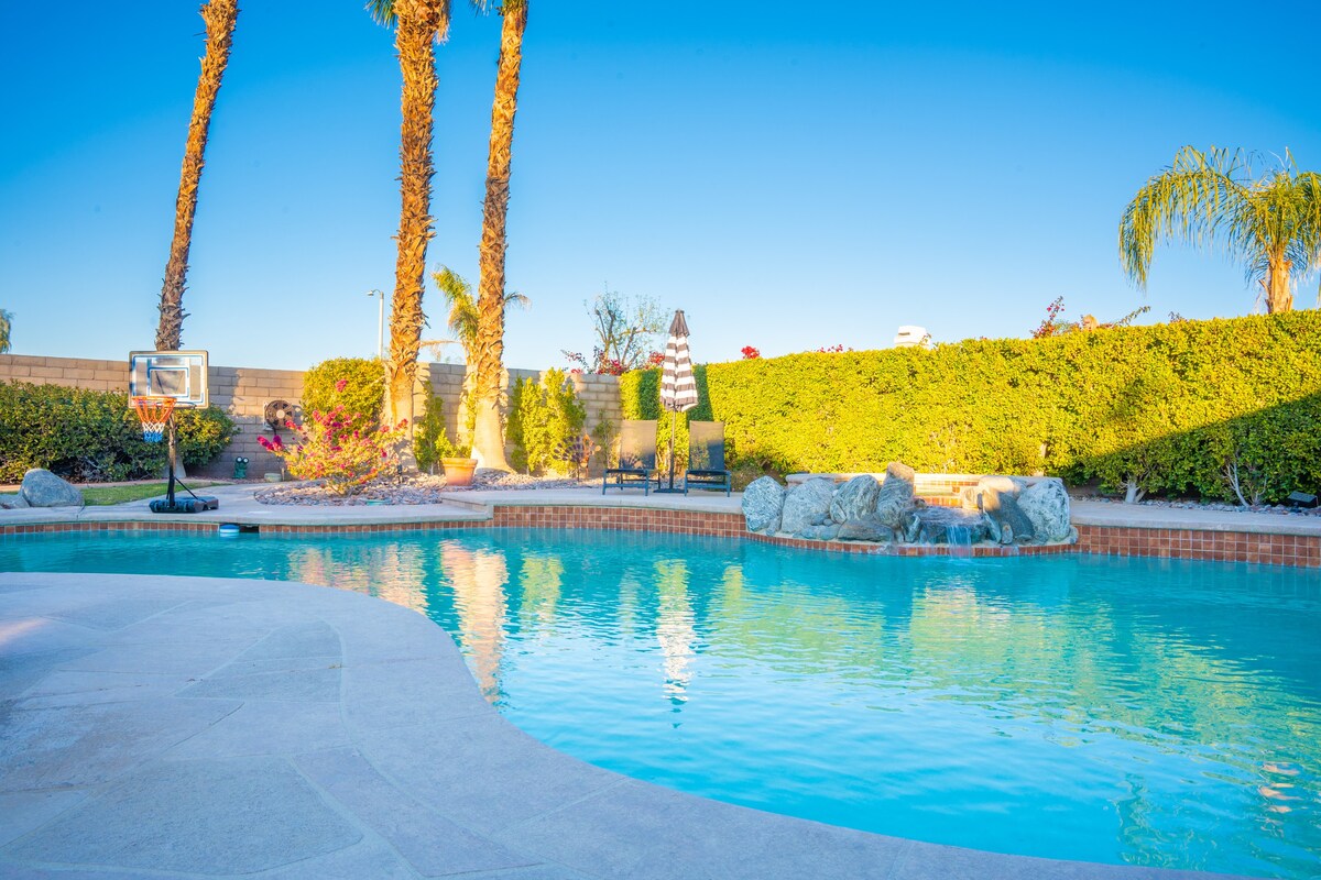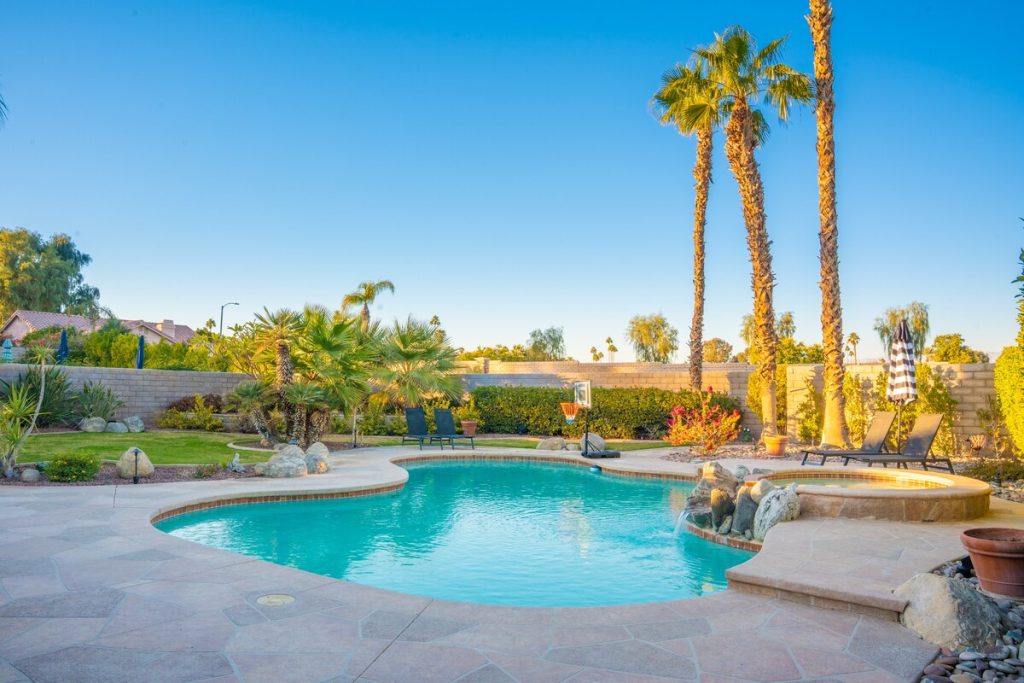 Palmeras is centrally located – walk to IW Tennis Gardens! – so you can easily explore the greater Palm Springs area. Or spend your days splashing in the private pool, relaxing in the spa and enjoying a bbq and sunset view in the expansive backyard.