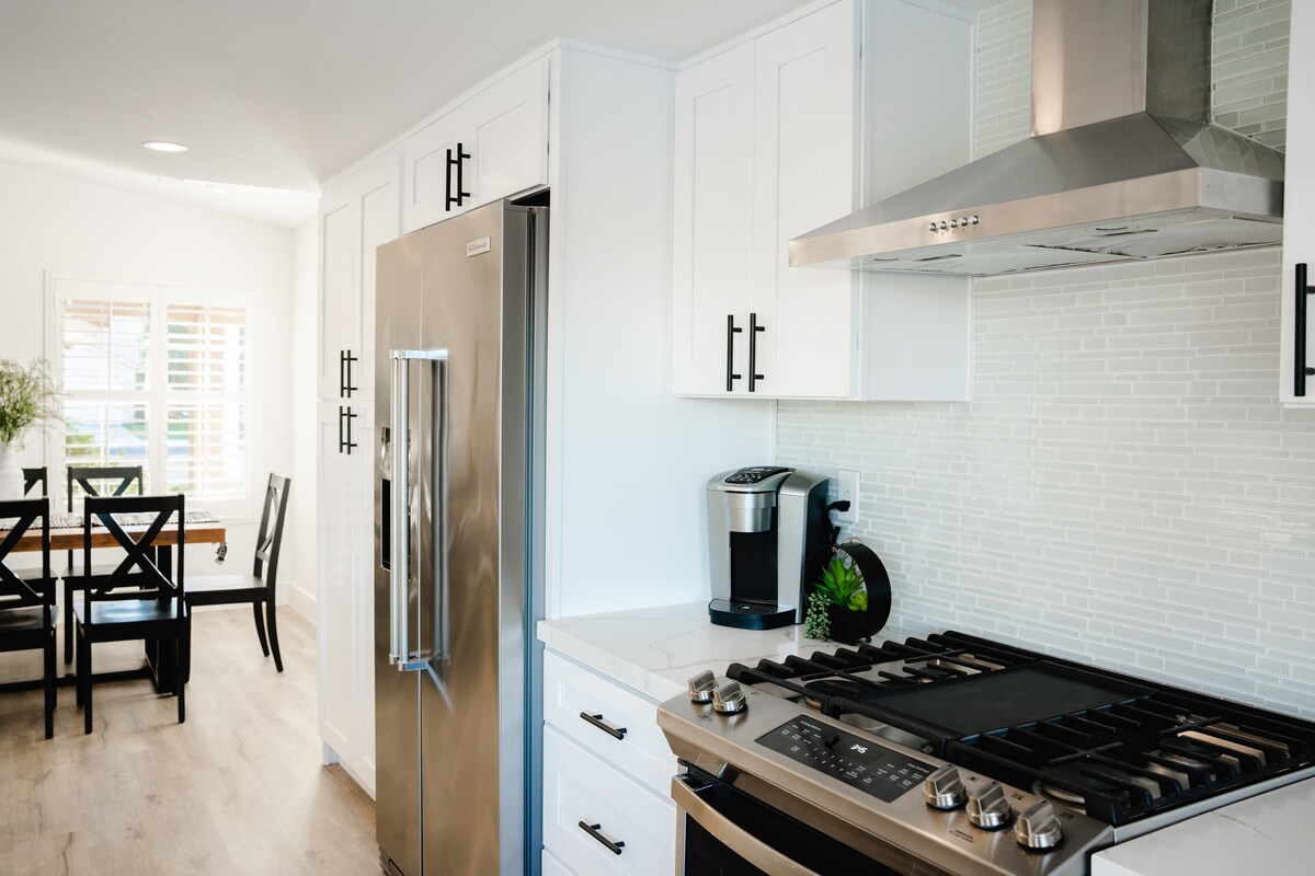 – Refrigerator, gas stove, oven, microwave and dishwasher