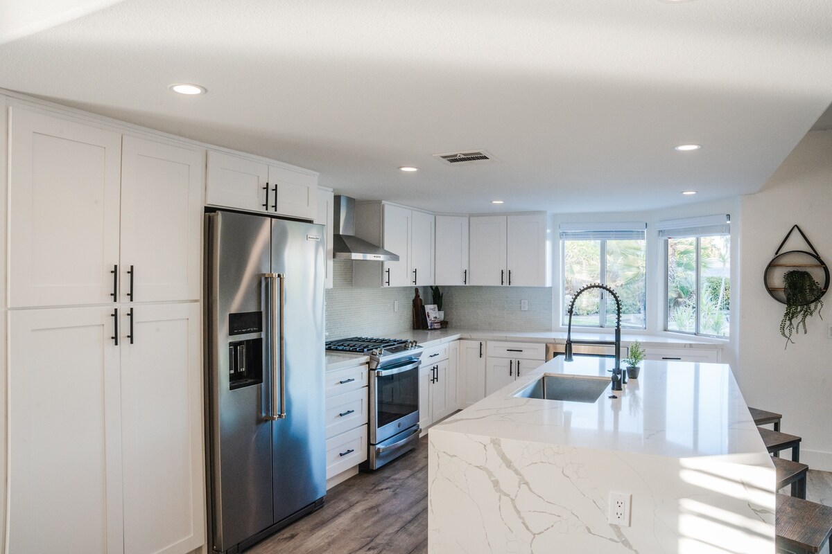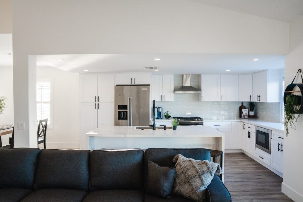 – Spacious open-concept living area with sliding doors leading to the back yard and pool
