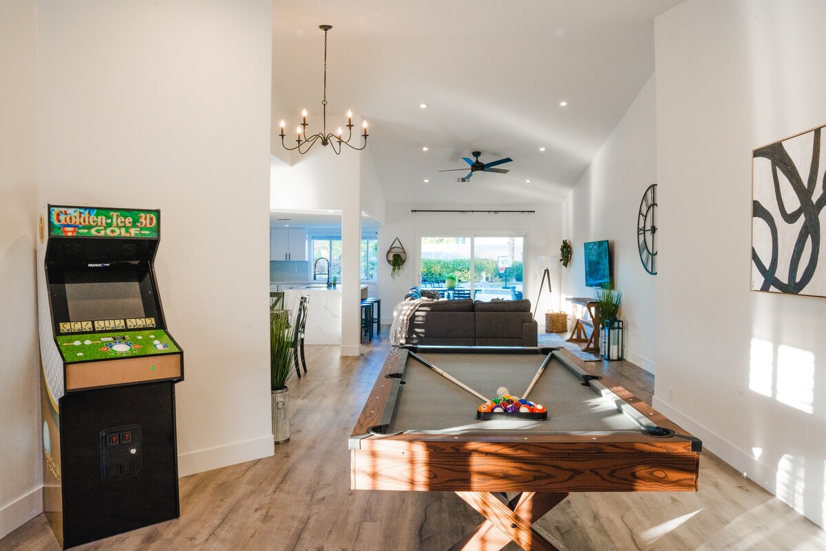 Guests can cook meals in the beautiful chef’s kitchen, relax in the comfortable living spaces and play in the game room.