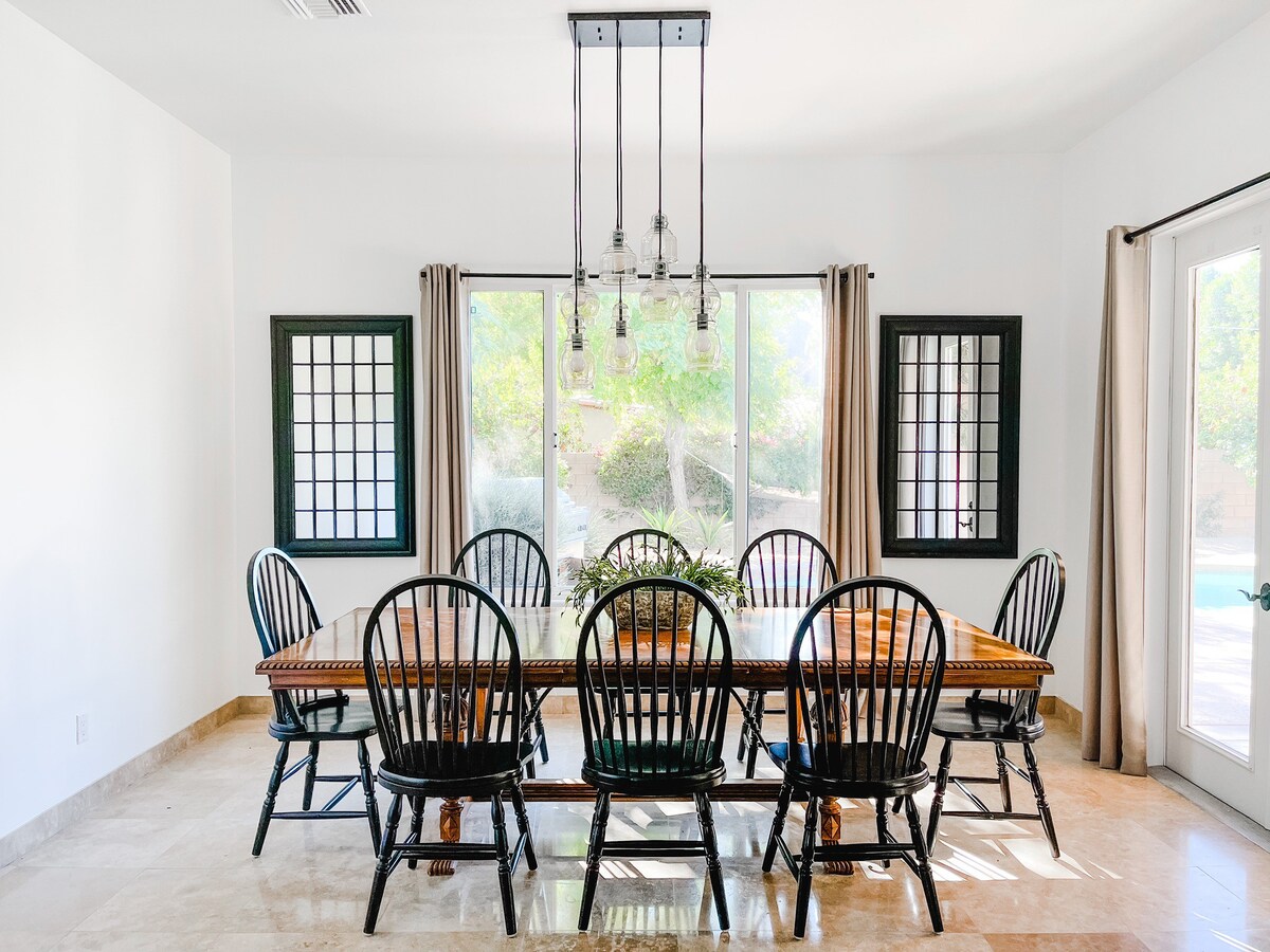 Located in the sought-after Desert Club Estates neighborhood, this 4 bedroom, 3.5 bathroom home features high ceilings, spacious bedrooms, and a fully equipped kitchen.