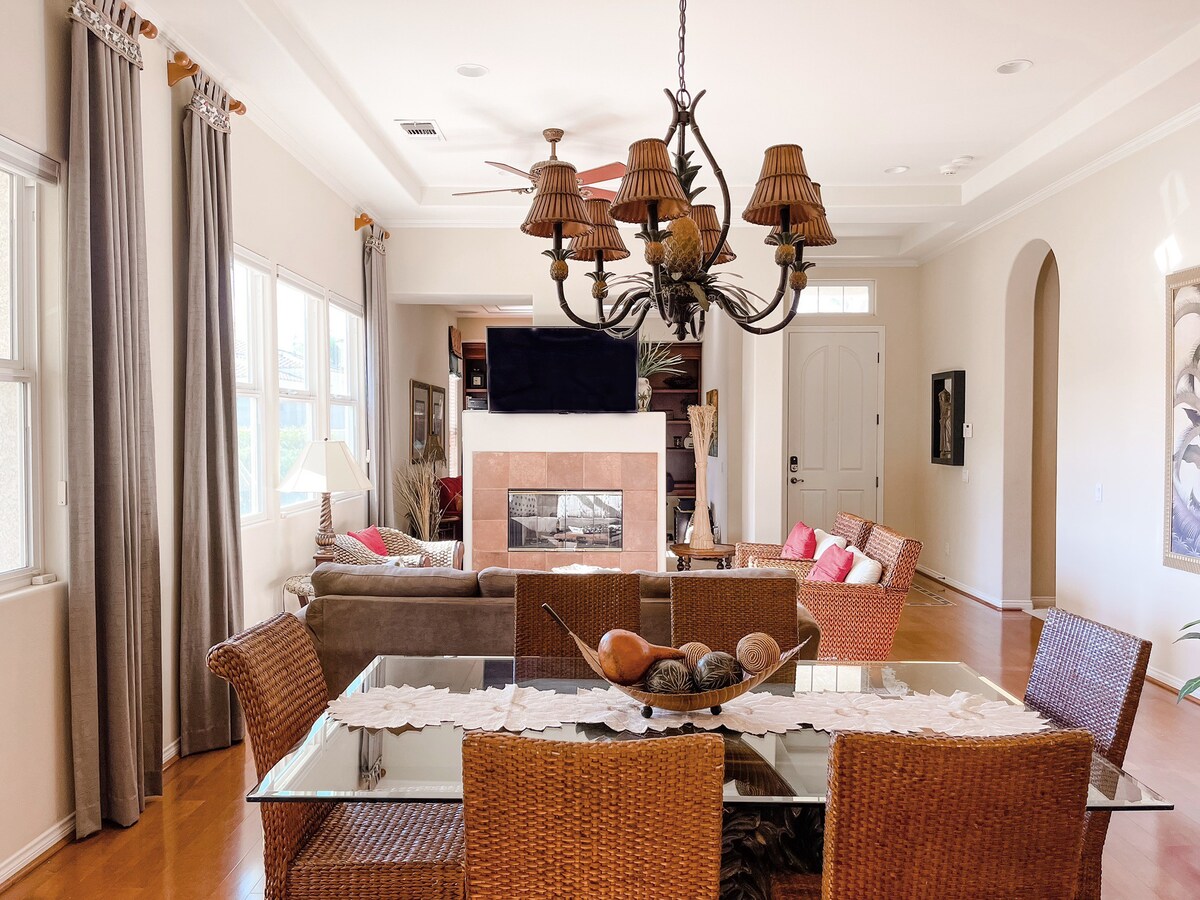 With a fully-equipped kitchen, spacious floor plan and private patio with bbq & fire pit, Sunset Palms is the ideal place to work remotely or just get away from it all.