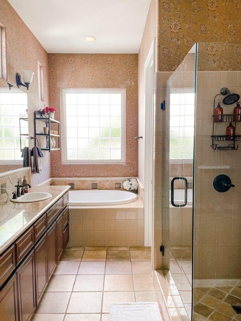 – En-suite bathroom with a glass-enclosed, step-in shower and separate bathtub