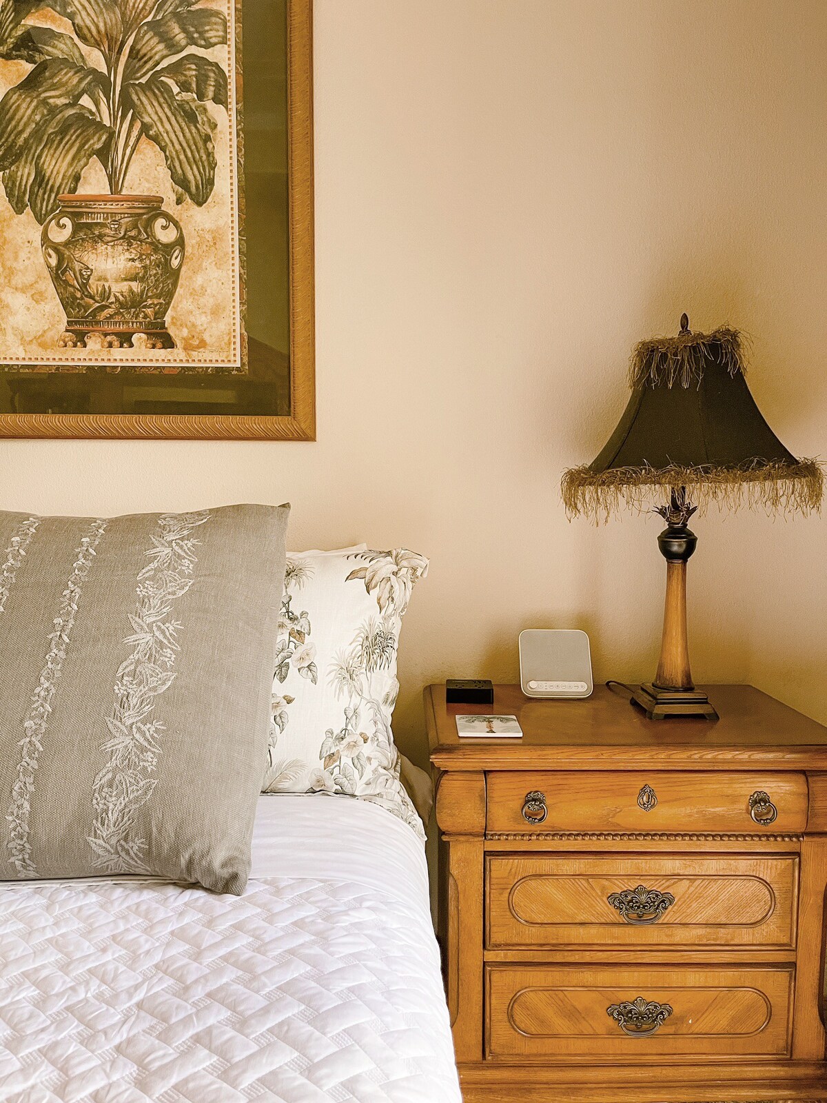 – Bedrooms are equipped with charging ports on each nightstand for easy charging at night and a white noise machine (the neighborhood is very quiet but many guests appreciate the option of ambient noise).