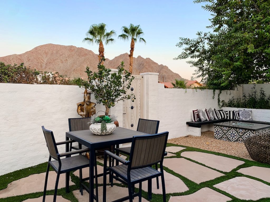 Lounge in the sun, splash in the pool, and soak in the hot tub while you watch the sun set over the Santa Rosa mountains. In the evenings, gather around the bbq, outdoor dining table and built-in fire pit. A perfect day without ever leaving the property!
