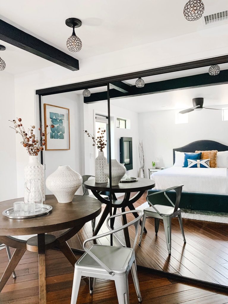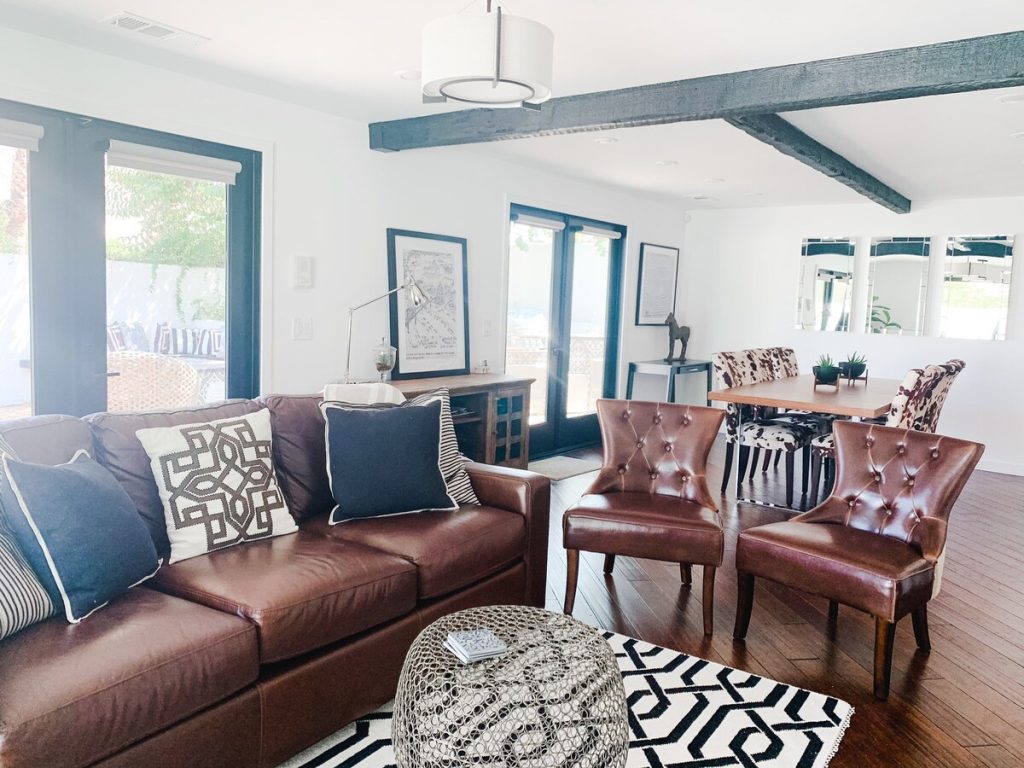 – Open concept living/dining/kitchen with an eclectic-contemporary design