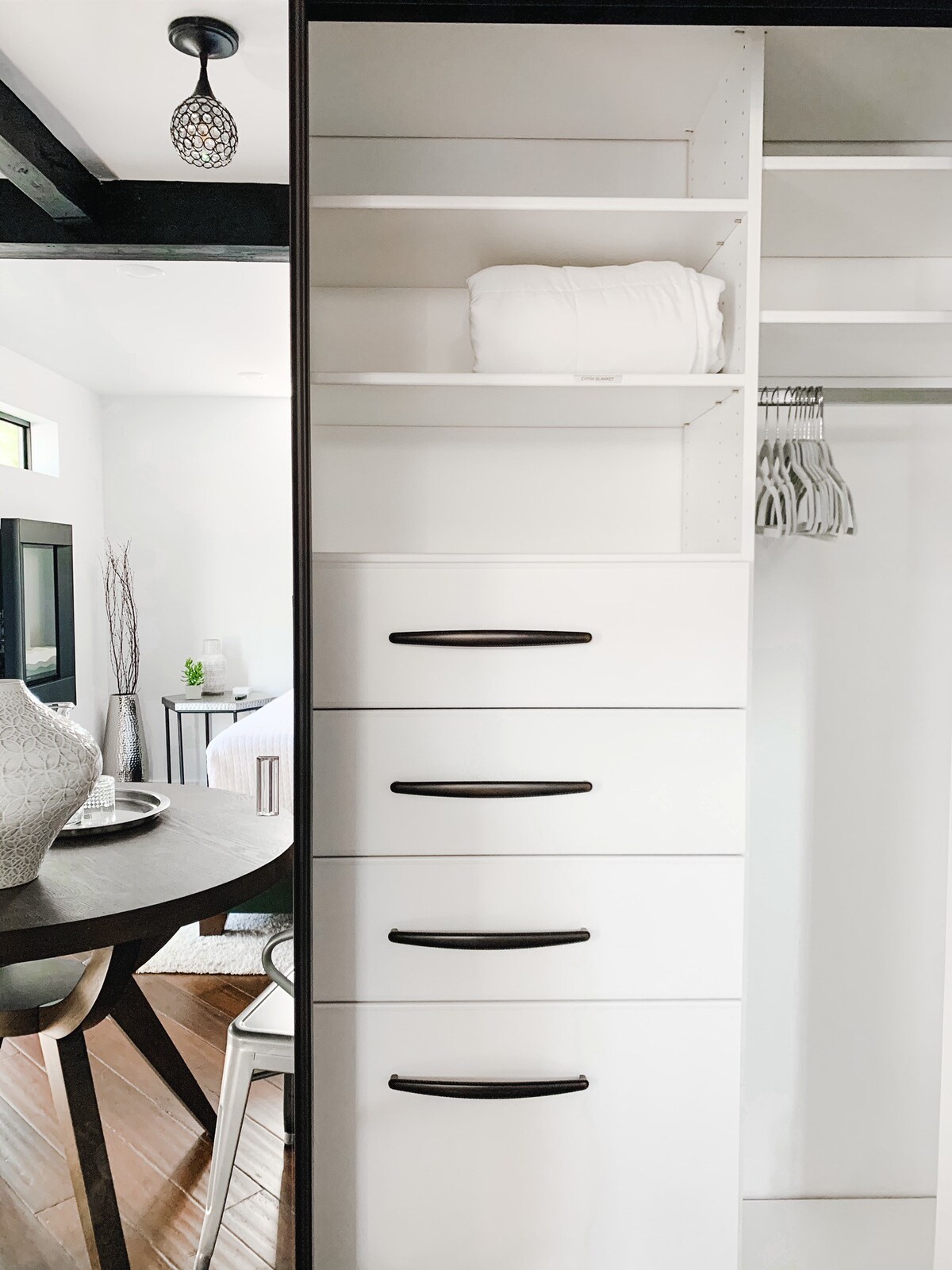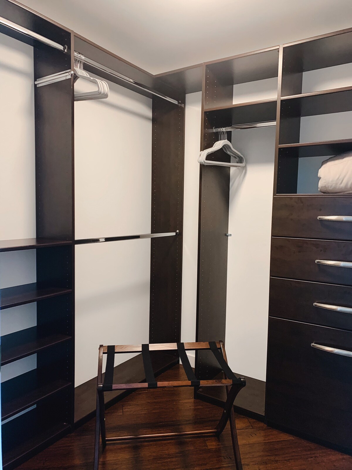 – Large walk-in closet with hangers and luggage stand
