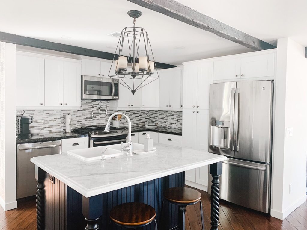 – Kitchen island with barstool seating for two
