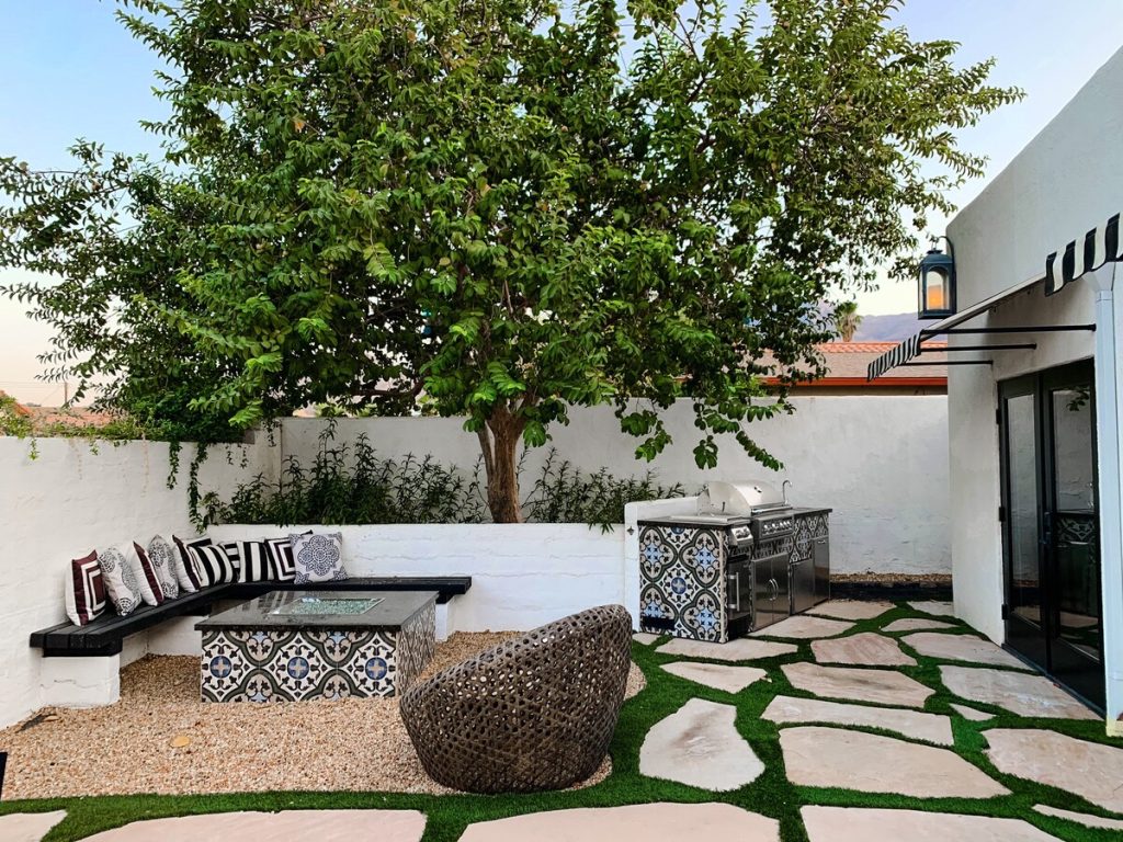 – Built-in fire pit and seating area