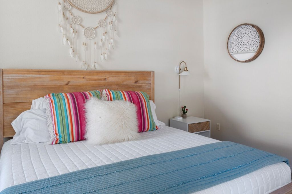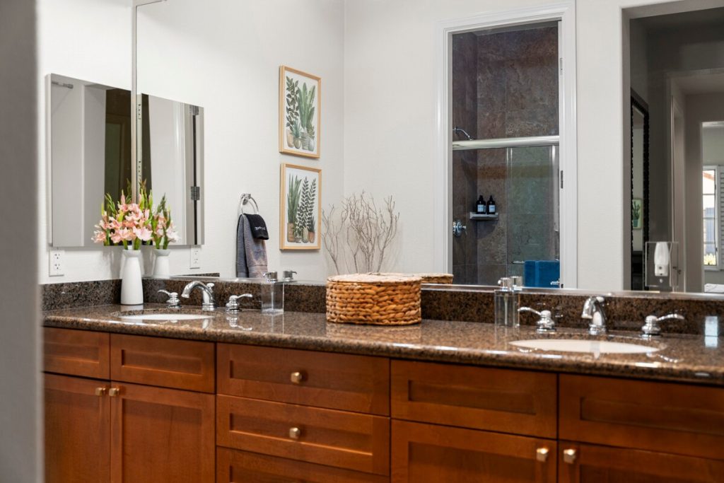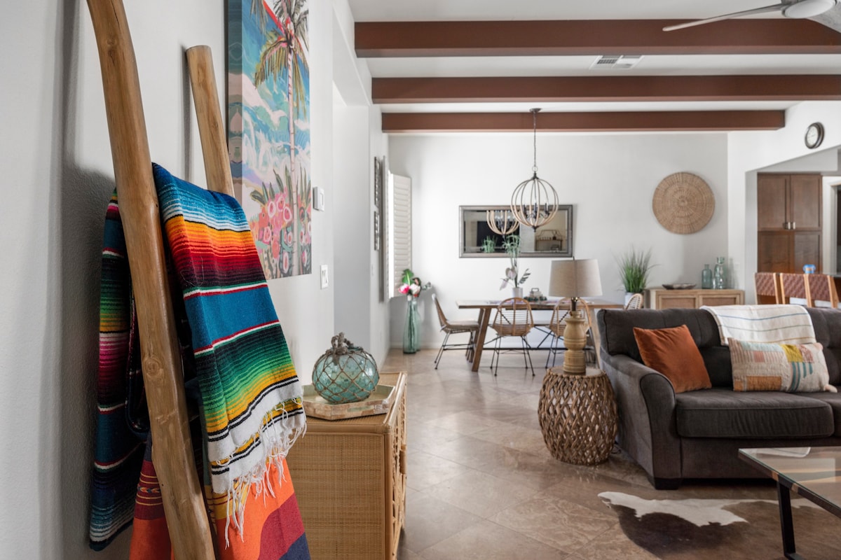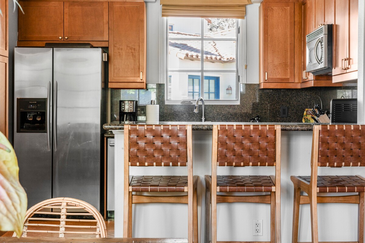 Escape to Villa Serenidad in the picturesque, gated community of Legacy Villas in La Quinta, California. This two-story townhome retreat offers breathtaking mountain and pool views from private downstairs and upstairs patios. With en-suite bathrooms in each bedroom, Villa Serenidad is an ideal escape for 3 couples, or a family (ask about our kids amenities!). Guests can also explore the 44 acre resort community with extensive paths on foot or by bike – with both adult and child size bikes from the garage. We look forward to hosting you soon!