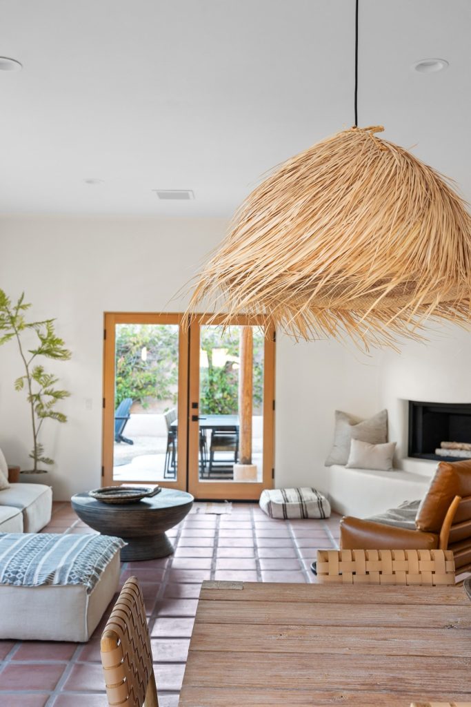 – French doors overlook the back patio and fire pit area